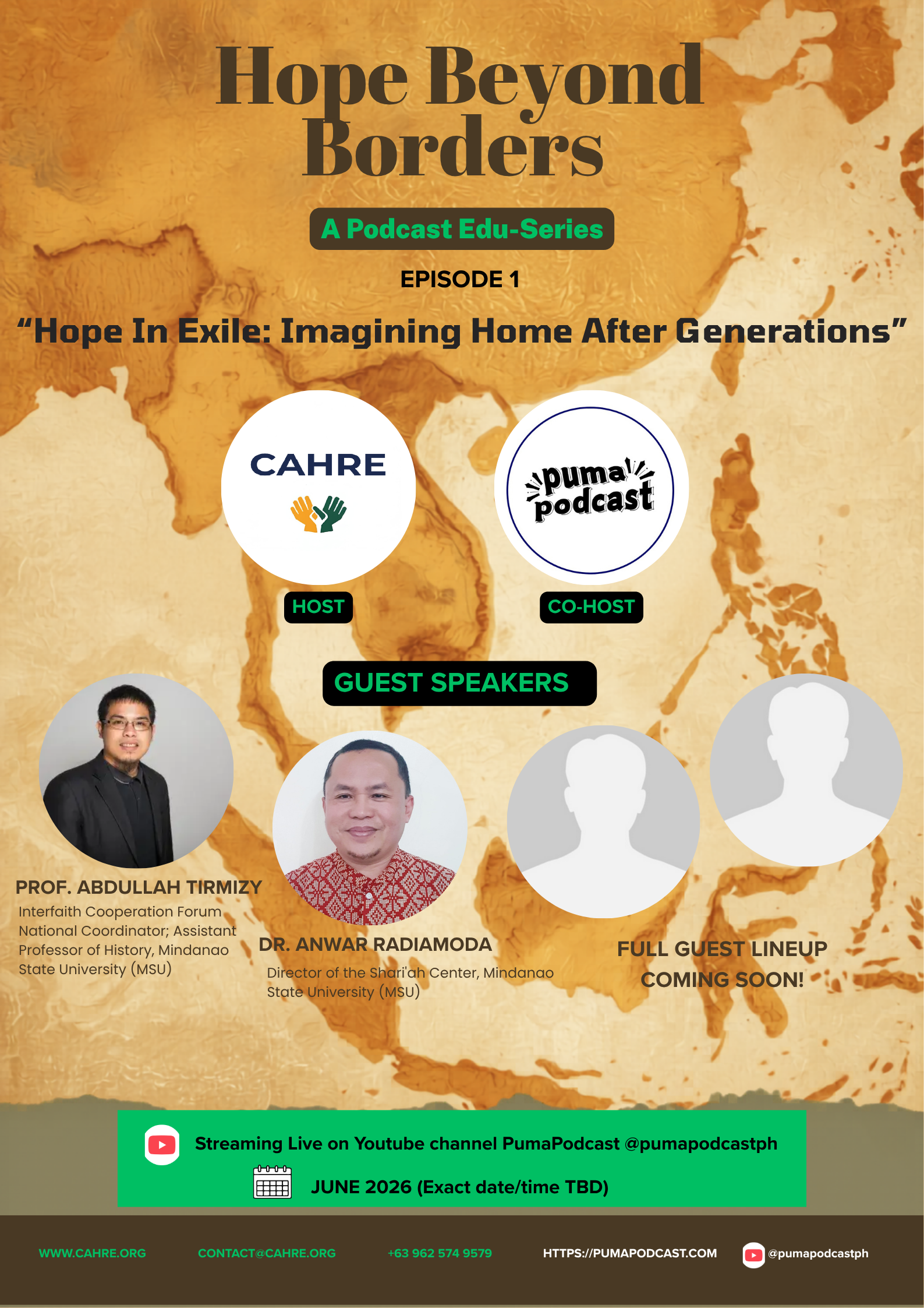 Read more: [Podcast Edu-Series] Hope Beyond Borders – Episode 1CAHRE, in collaboration with PumaPodcast, is extremely delighted to host a new Edu-series podcast “Hope Beyond Borders: Southeast Asia’s Voice for Displaced Communities“. In our premiere episode, “Hope in Exile: Imagining Home After Generations” we dive into the complex geometry of belonging. We are bringing together a diverse tapestry of voices to bridge the experiences…